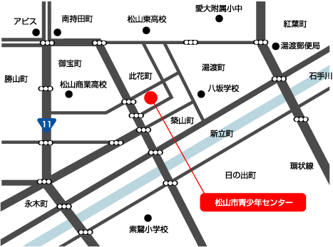 〒790-0864 愛媛県松山市築山町12-33 松山市青少年センター内